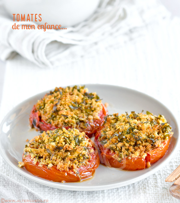 Oh bonne Mère ! Le blog vient d’avoir 14 ans (le 27 mai dernier) et je ne vous ai pas encore parlé de ces tomates ? Des tomates à la Provençale de mon enfance ?