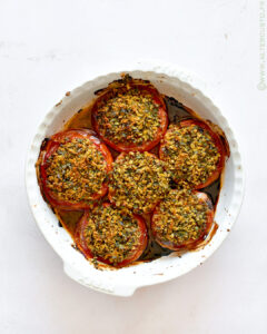 Quand ma grand-mère sortait le plat du four, les tomates avaient perdu une grande partie de leur volume, leurs formes… Elles étaient assez estramassées et faisaient même peine à voir. Un étranger aurait pensé que c’était une blague, que le repas serait frugal tellement ces tomates étaient ratatinées 😀
